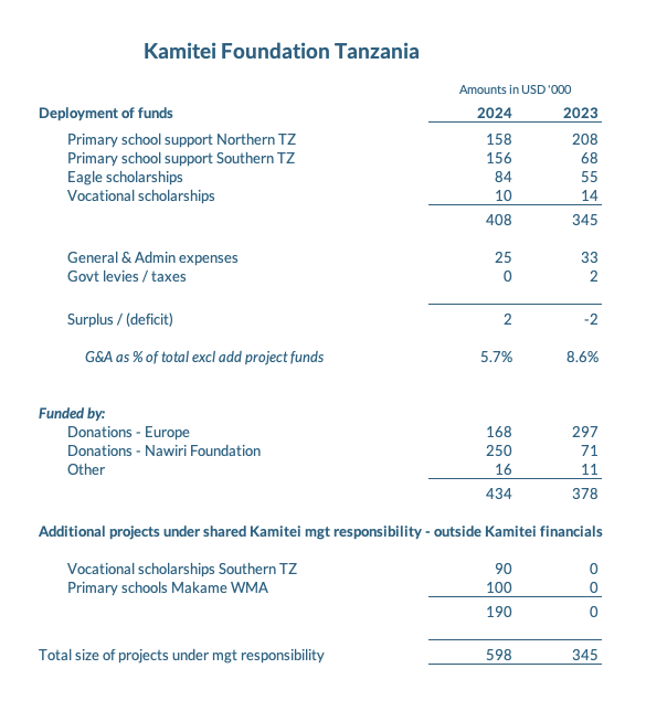Kamitei Foundation is committed to financial resilience and sustainable growth, ensuring every investment aligns with our strategic plan and goals, while delivering measurable positive change for rural Tanzanians. We believe in full financial transparency and make our audited financial accounts for both our organisations in Tanzania and The Netherlands publicly available.